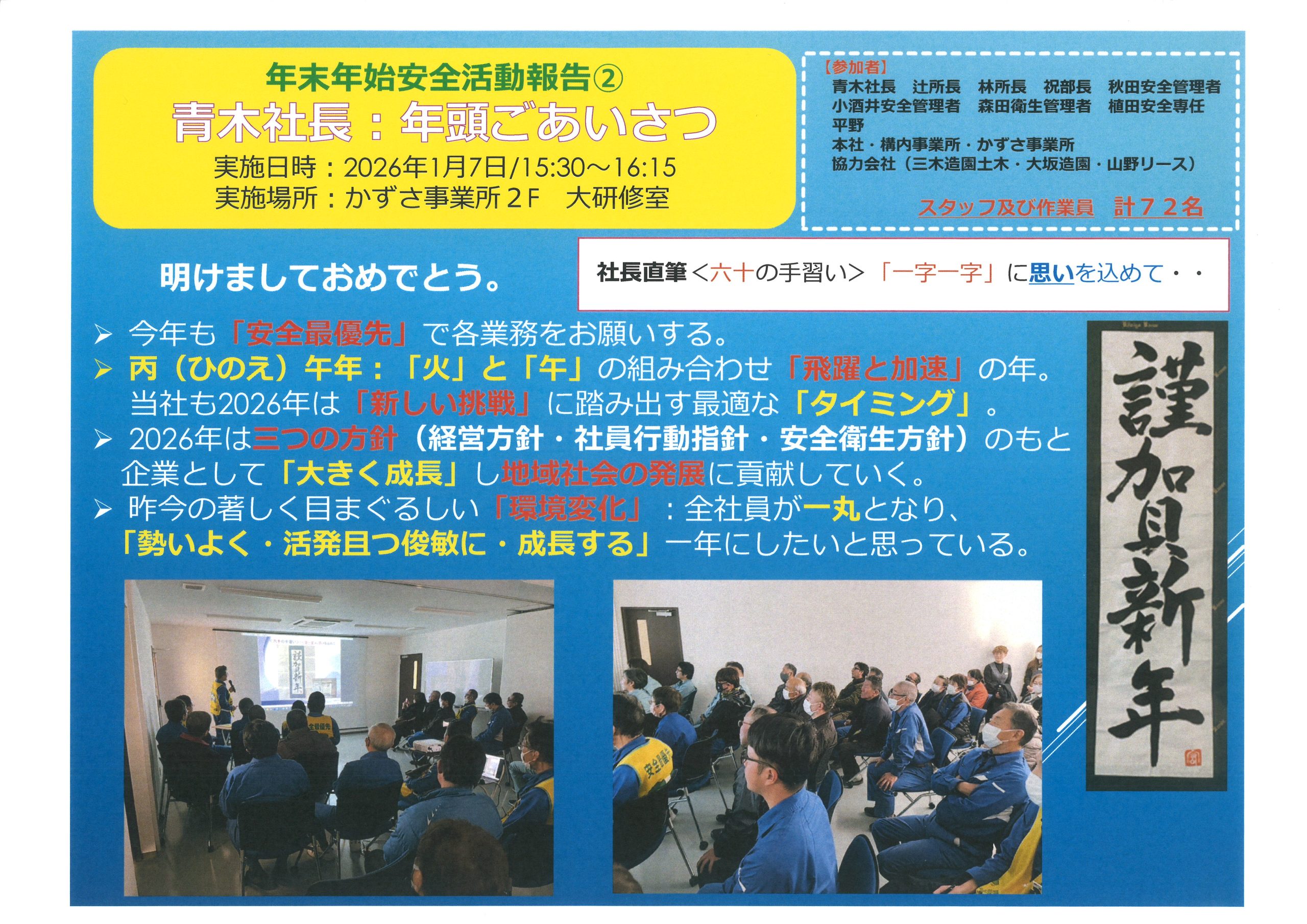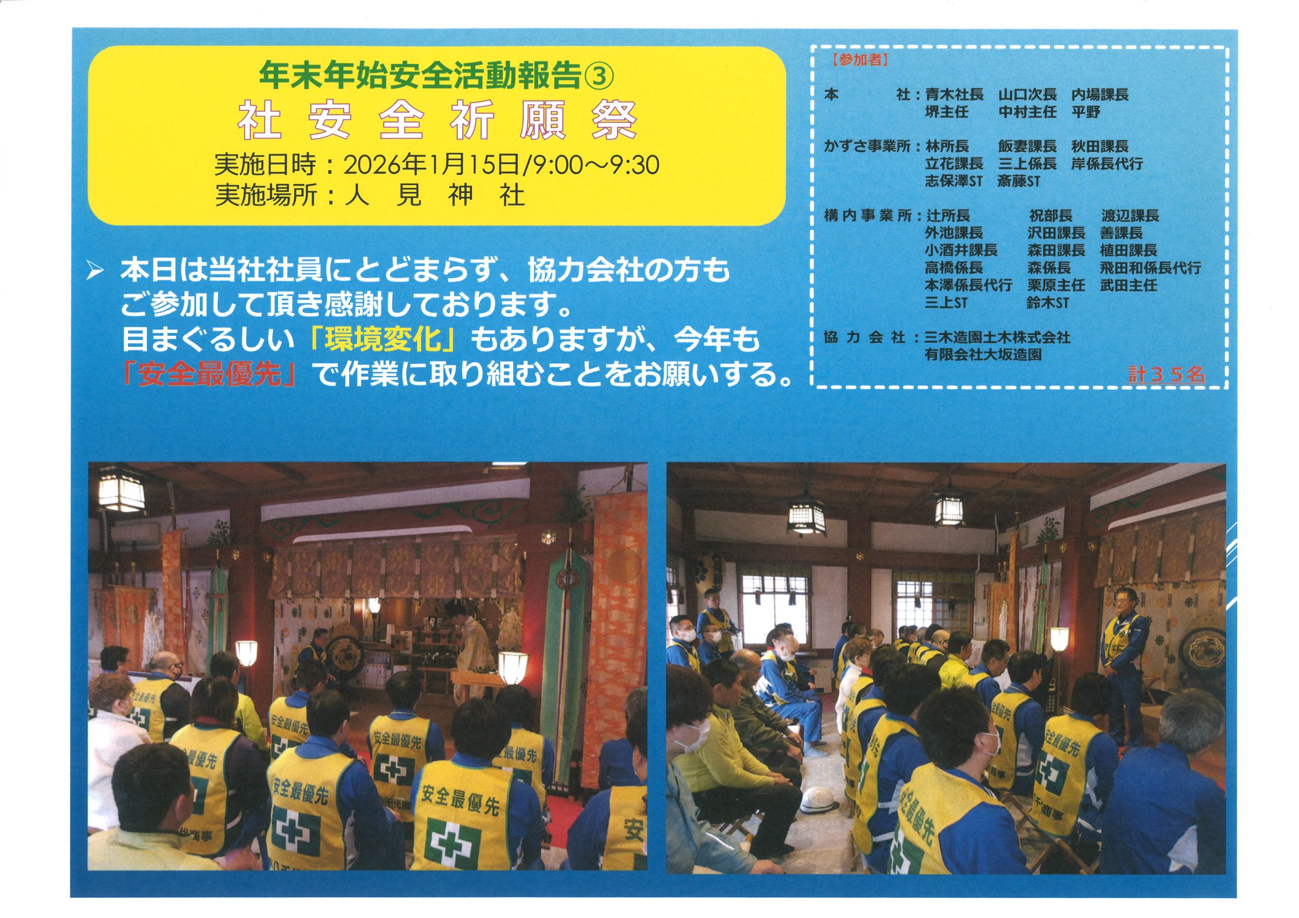 年末年始安全活動報告〈年末安全立哨・年頭ごあいさつ・社安全祈願祭〉